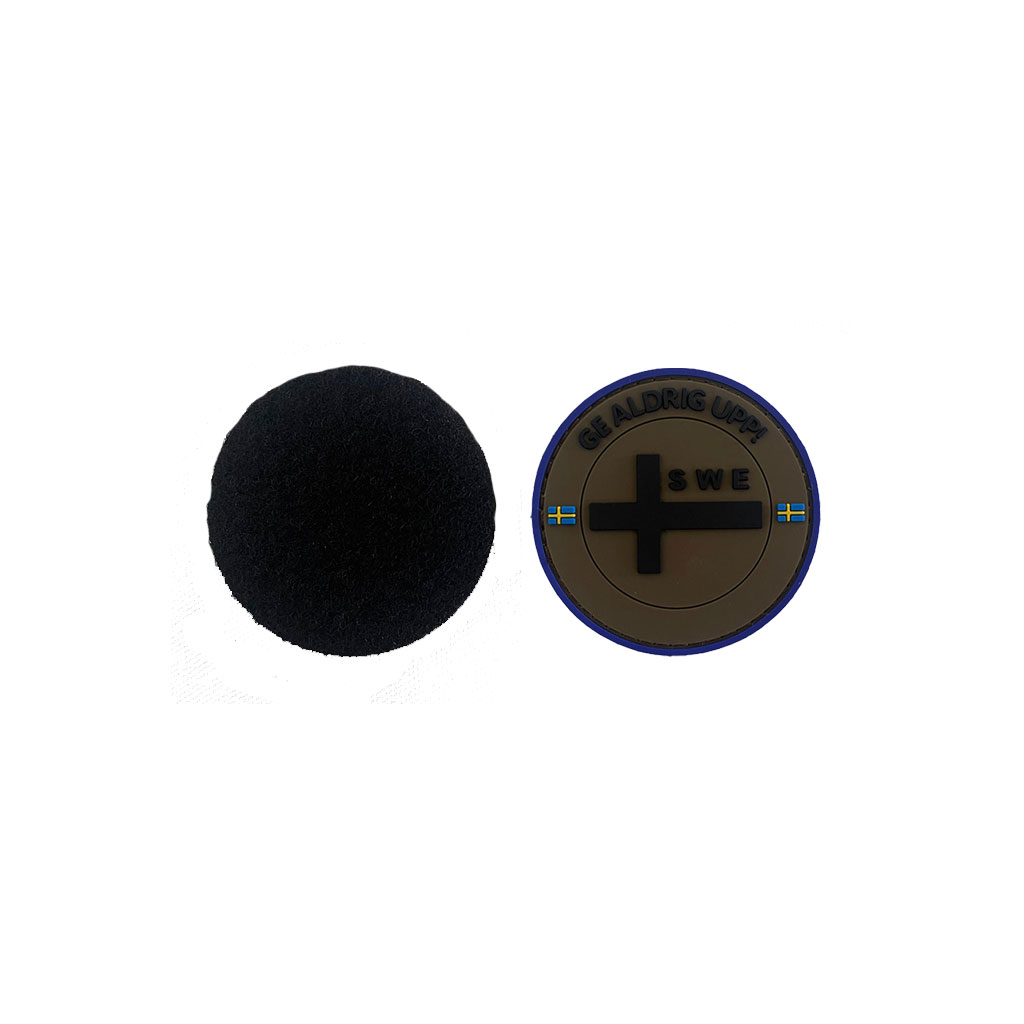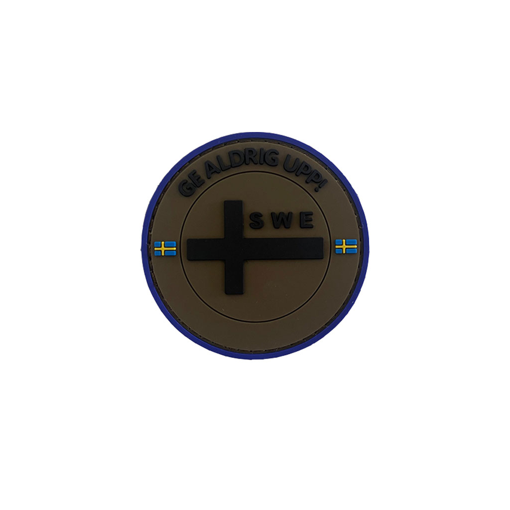 Tufft och snyggt märke i slitstark gummi med budskapet "Ge aldrig upp". Perfekt för att sätta personlig prägel på jackor, västar, ryggsäckar och annan utrustning.